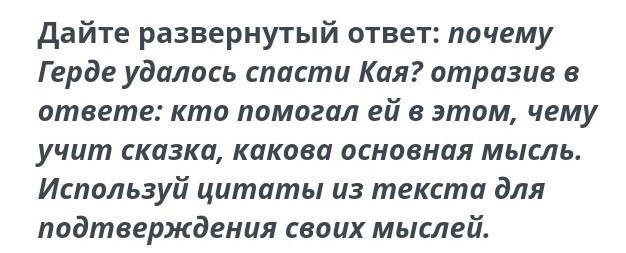 Ответ:Потому что она любила Кая. Ей помогал олень. Не хвастаться. Любовью можно победить всё что угодно