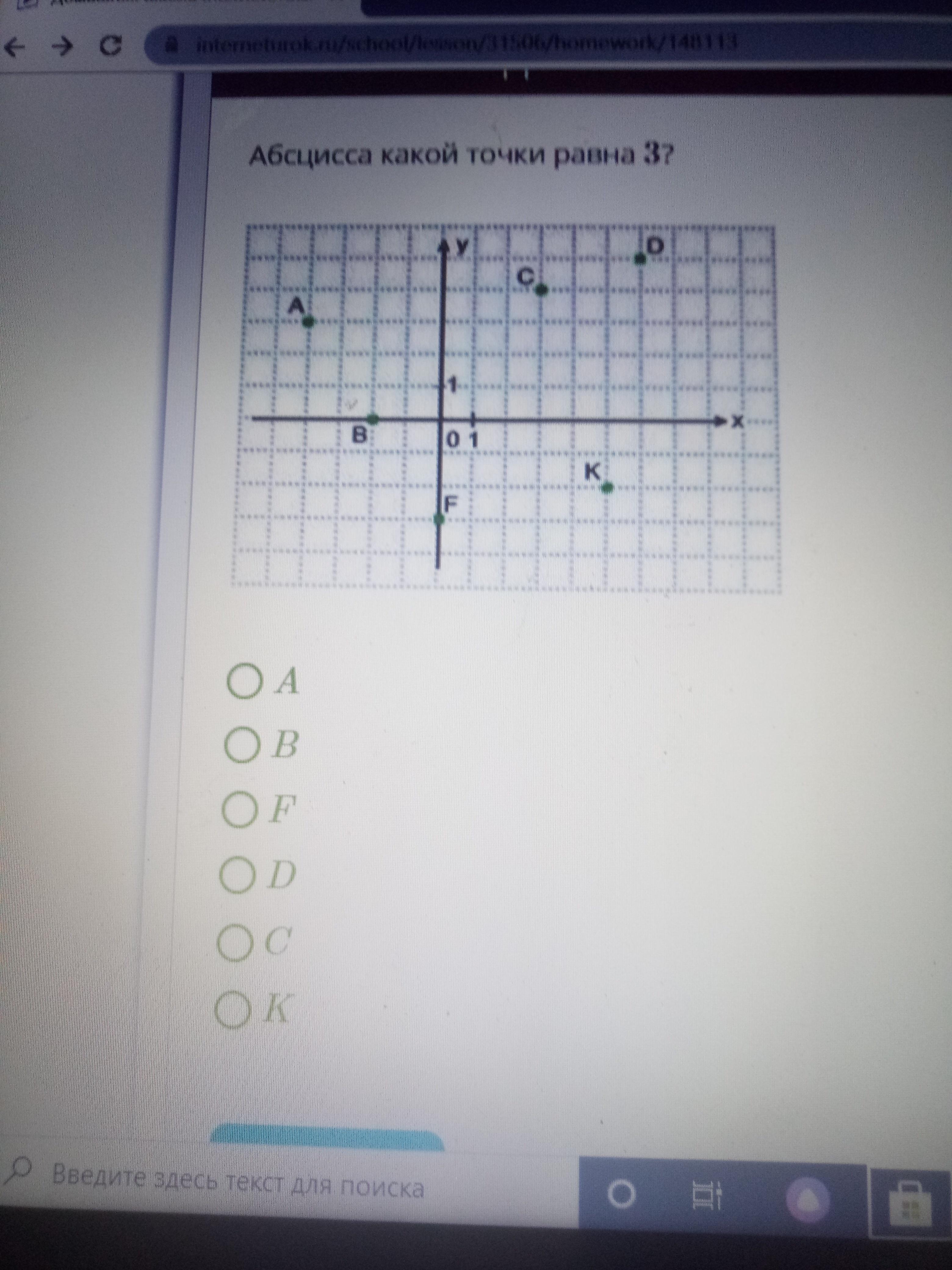 абцисса точки С равна трем.