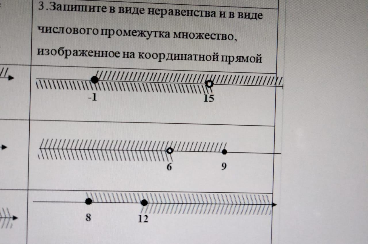 .Запишите в виде неравенства и в виде числового промежутка множество, изображенное на координатной прямой