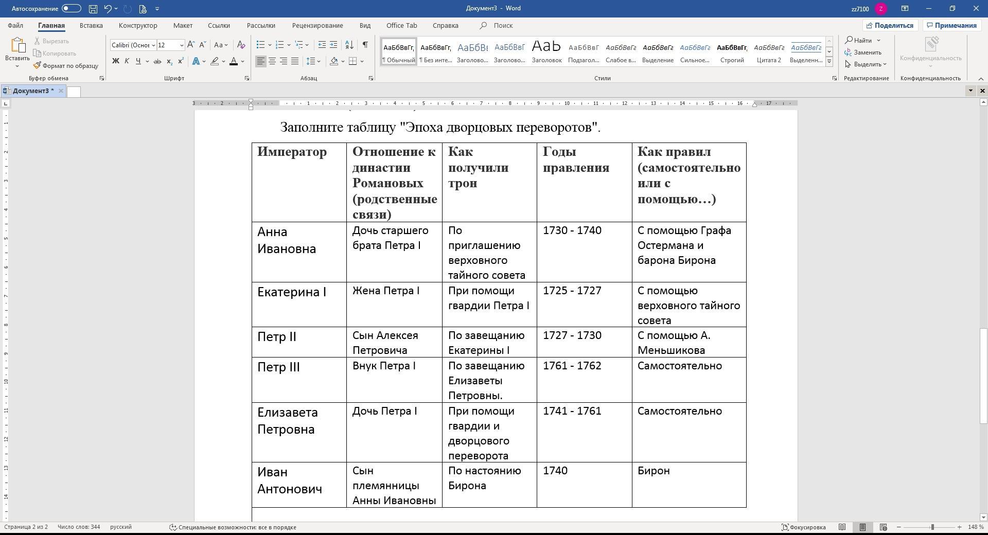 Заполните таблицу "Эпоха дворцовых переворотов".