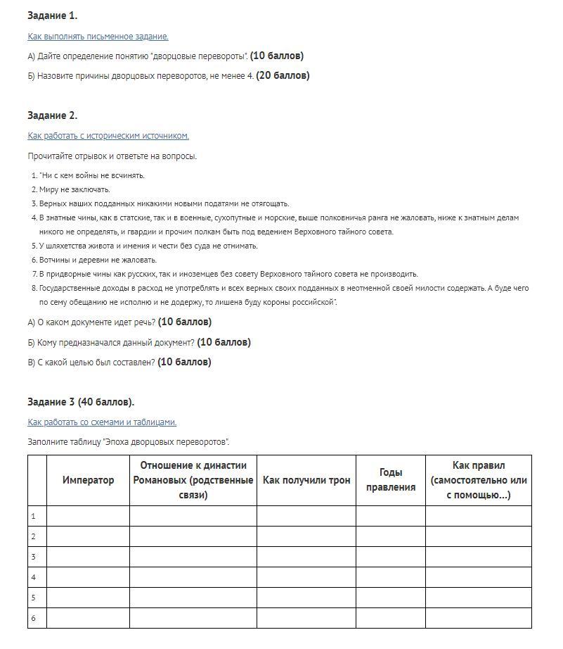 Б) Назовите причины дворцовых переворотов, не менее 4. (20 баллов)