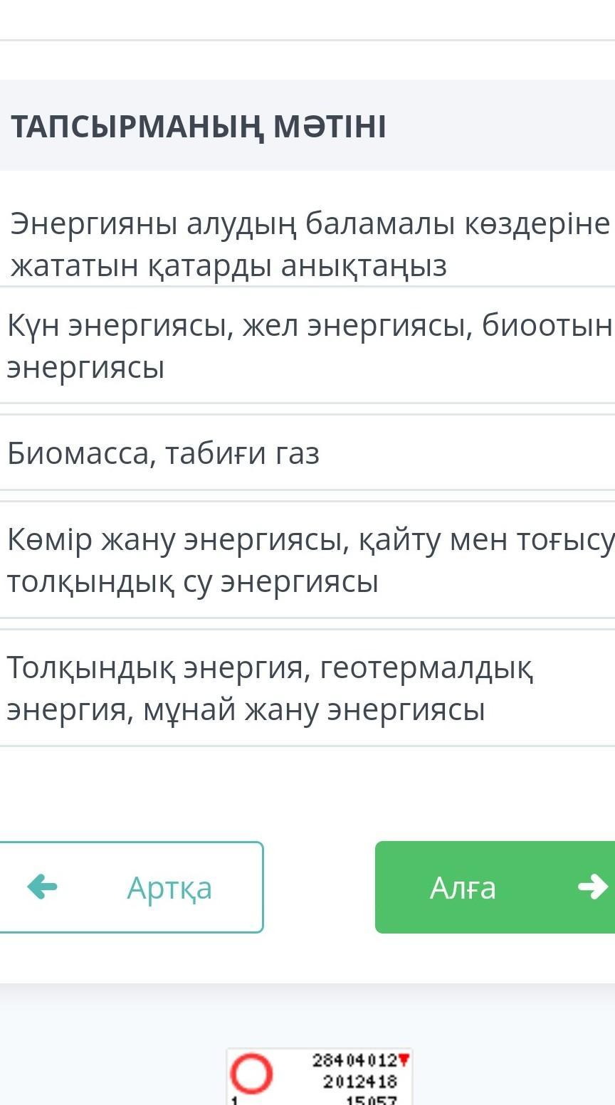 жауабы кун энергиясы , жел энергиясы, биоотын энергииясы