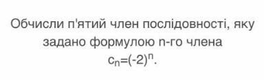 Перевод: Вычисли пятый член последовательности, которую задано формулой n-го члена .