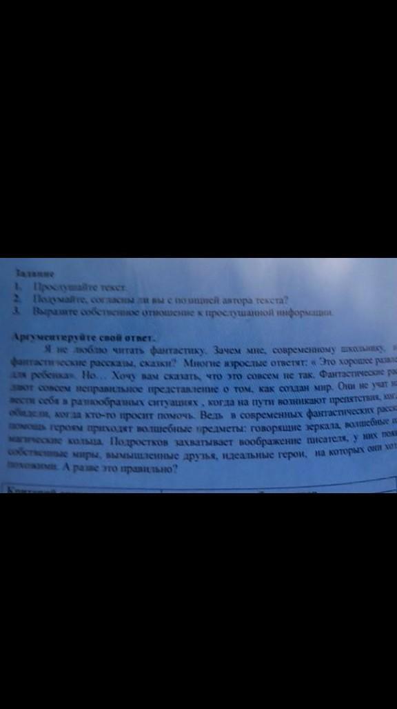 1.Прочитайте текст. 2Подумайте и напишите, согласны ли вы с позицей автора текста? 3.Выразите собственное отношение к прошлушанной информации.