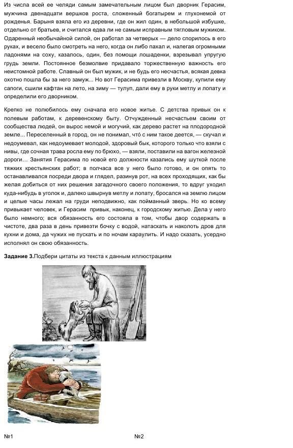 Подраздел И.С. Тургенев «Муму» Задание 3.Подбери цитаты из текста к данным иллюстрациям
