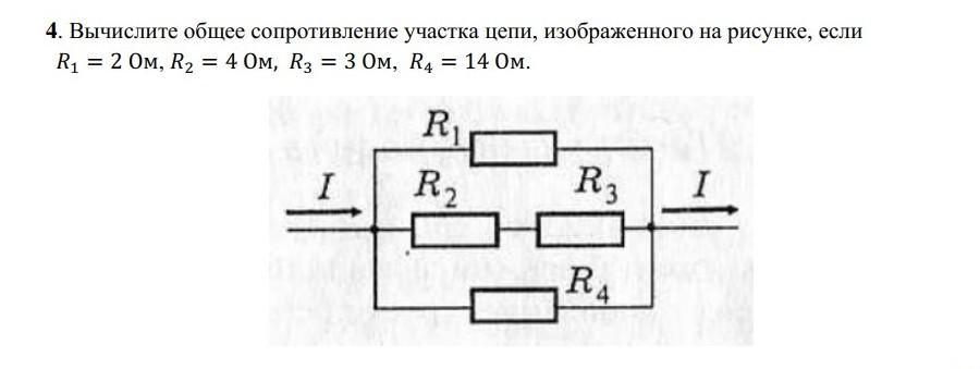 R = R1*r23*R4 / ((R1*r23)+(r23*R4)+ (R1*R4)) = 2*7*14 / (2*7 + 7*14 + 2*14) = = 1.2 Ома