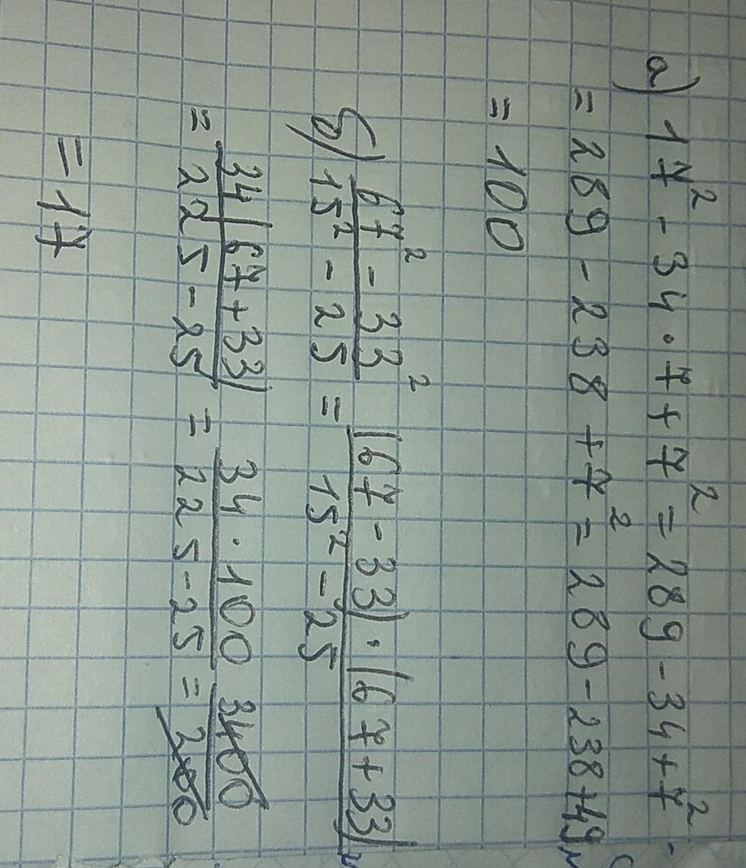 б)(67-33)(67+33)/225-25=34*100/200=3400/200=17
