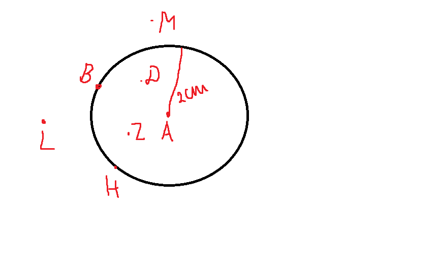 начерти круг центром А и радиусом 2 см. отметье две точки а)лежащие на окружности