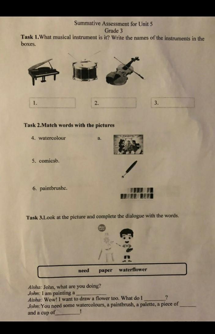 Task 1. What musical instrument is it? Write the names of the instruments in the
