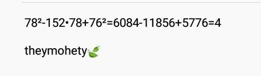 78²-152×78+76² = 78²-2*76*78+76² = (78 - 76)² = 2² = 4
