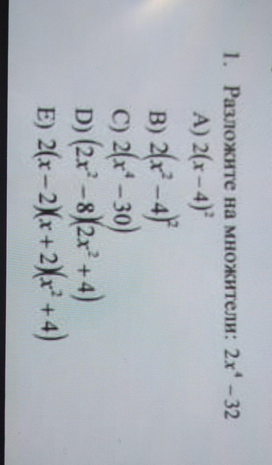 Ответ: Е)2(х-2)(х+2)(х²+4)