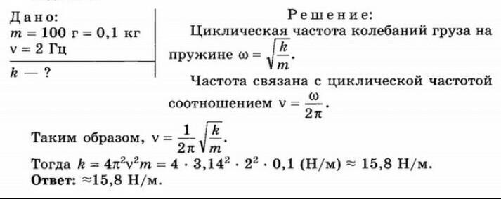 5. а) Какой период у математического маятника длиной 90 м? c) Груз массой 100 г колеблется с частотой 2 Гц под действием пружины. Определите жесткость пружины.