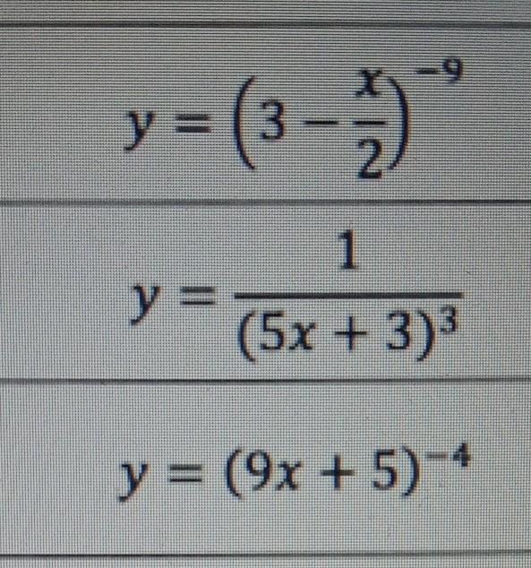 3)y' =36/(9x + 5)°5