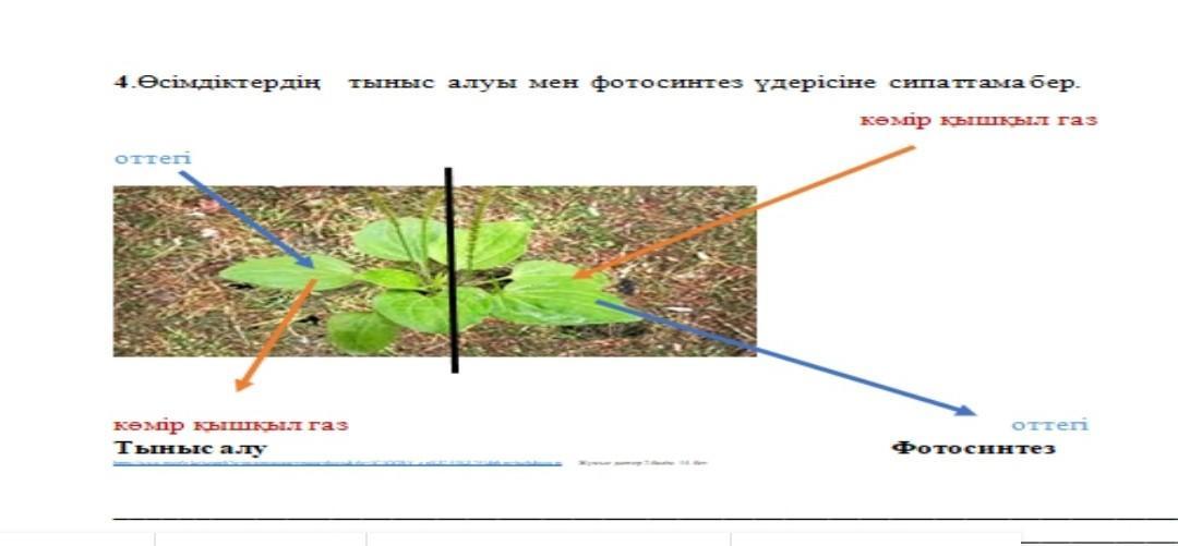 4.Тыныс алу дегеніміз-оттегінің сіңіріліп,көмірқышқыл газының бөлінуі,сонымен қатар өттегін пайдалану арқылы органикалық заттардың тотығуы.Тыныс алу -аэробты(оттекті) және анаэробты(оттексіз). Өсімдіктердің тамырлары да,сабақтары мен жапырақтары да ,гүлдері мен әлі пісе қоймаған жемістері де тыныс алады. Тыныс алу кезінде өсімдіктер ауадан оттегіні (О2)жұтып,көмірқышқыл газын(СО2)бөліп шығарады.Өсімдіктердің арнайы тыныс мүшелері жоқ.Газ алмасу жапырақ қабықшасындағы айрықша түзіліс -сабақтың қабығында орналасқан саңылау мен жасымықша арқылы жүзеге асырылады.Тыныс алу процесі өсімдіктің өсіп келе жатқан жас мүшелерінде ,әсіресе жапырақтарында күшті ,ал сабағы мен тамырында баяу жүреді.