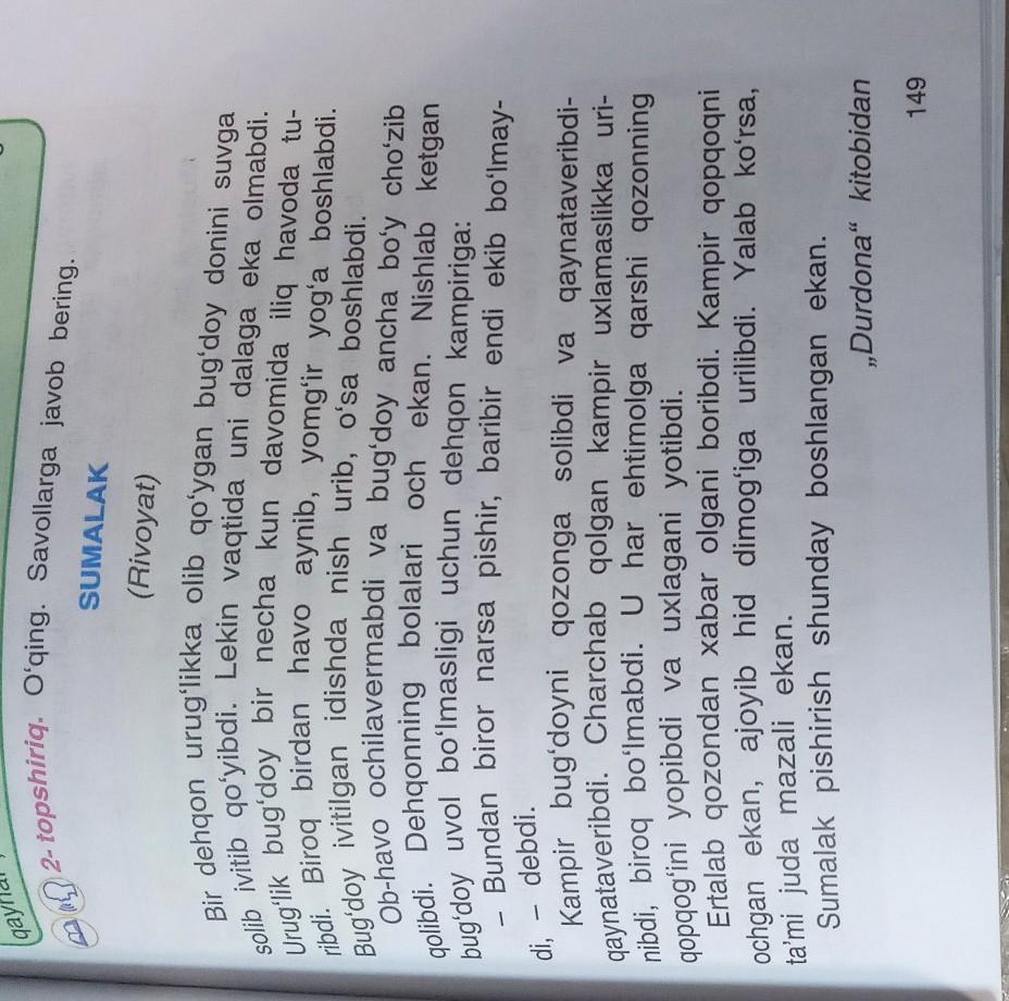 - Kampir bug'doyni ko'p qaynatib qopqoqni yopibdi . Keyin sumalak laydo bo'libdi.