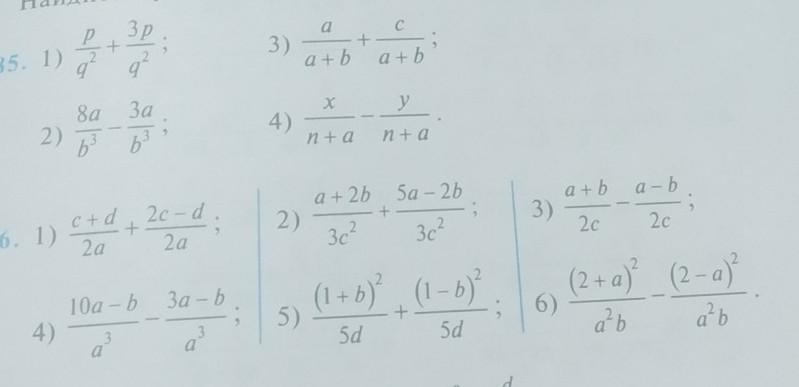 4) x/(n+a)-y/(n+a)=(x-y)/(n+a)