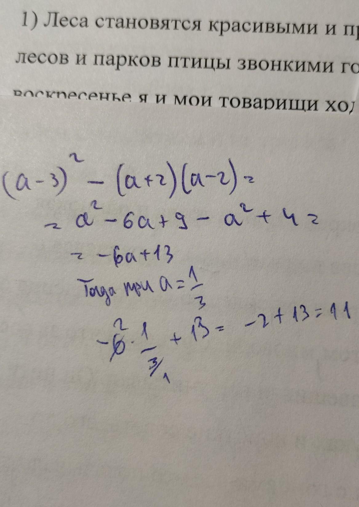 выражение сократится до -6a+13, тем самым подставляя a будет 11.