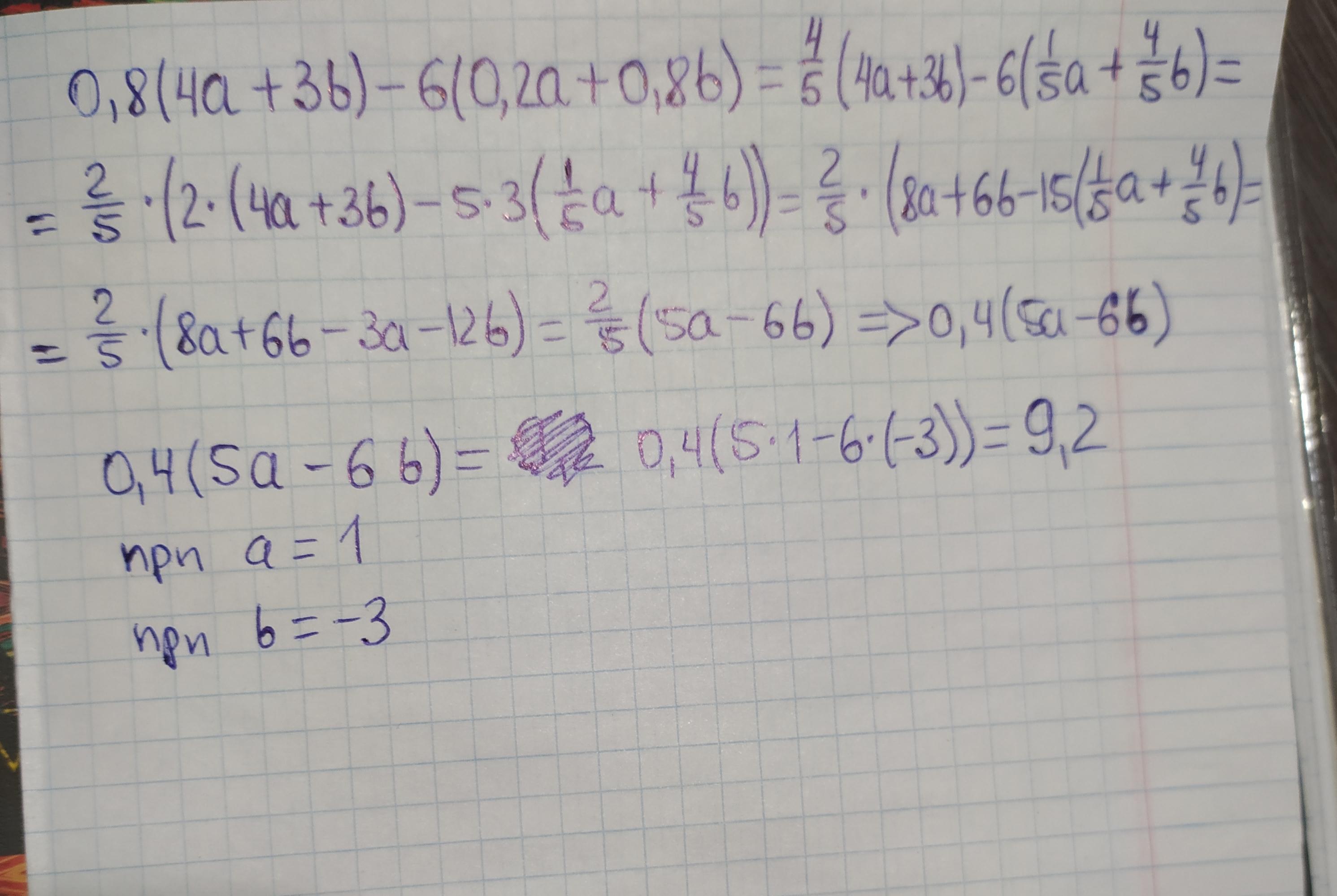 см фото, сначала раскрываем скобочки, затем уже прорешав, меняем буквы на числа. на всякий случай, проверь в конце учебника верен ли ответ.