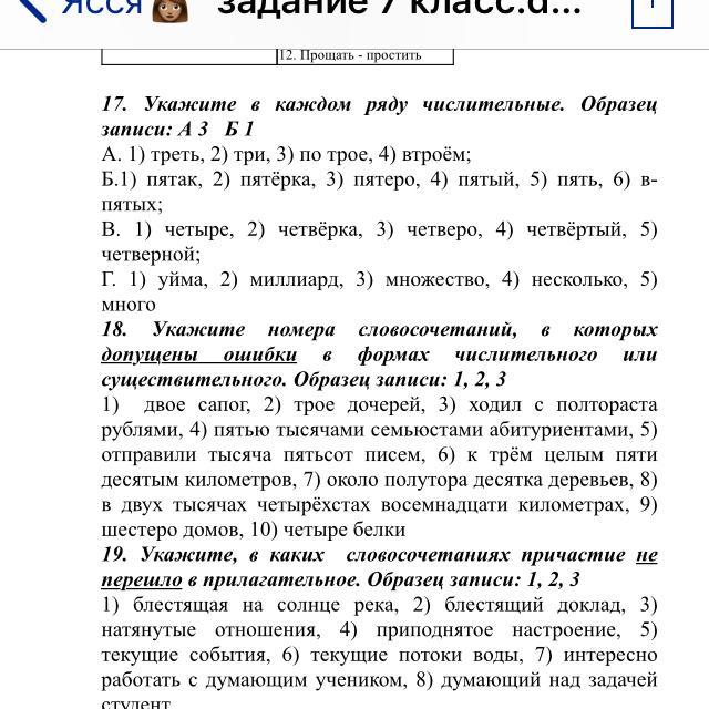 Ответ: 17: А 2; Б 4, 5; В 1, 4; Г 2. 18: 1, 2, 3, 6, 9. 19: 1, 6, 8.