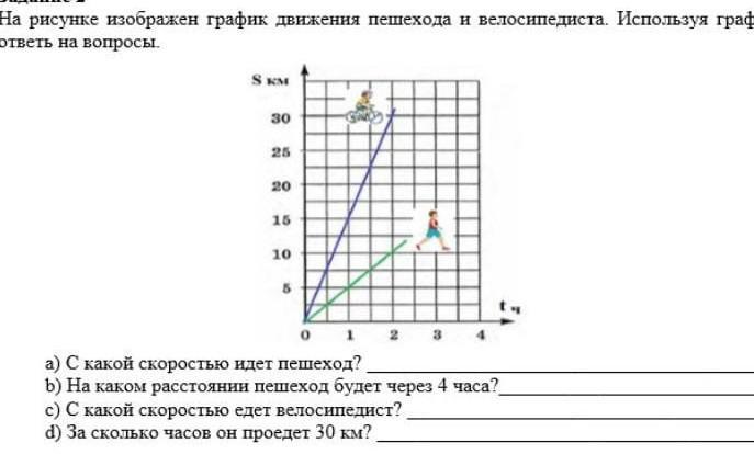 a)5 км/ч( так как за 1 час прошёл 5 км)
