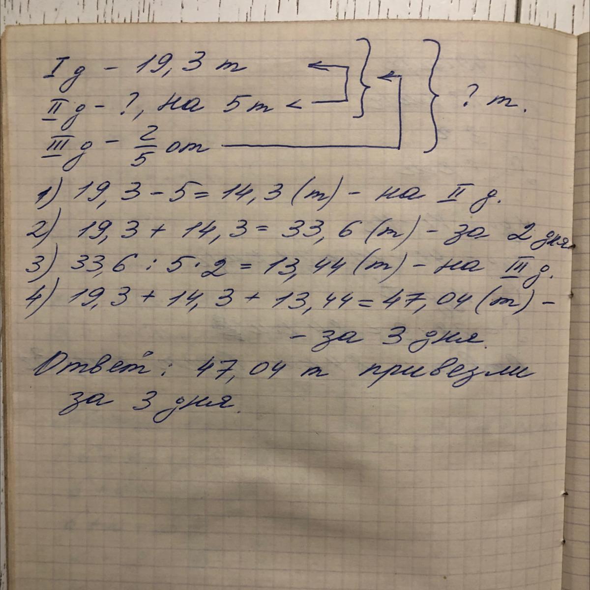 1. 19,3-5=14,3 (т) - привезли за 2 день
