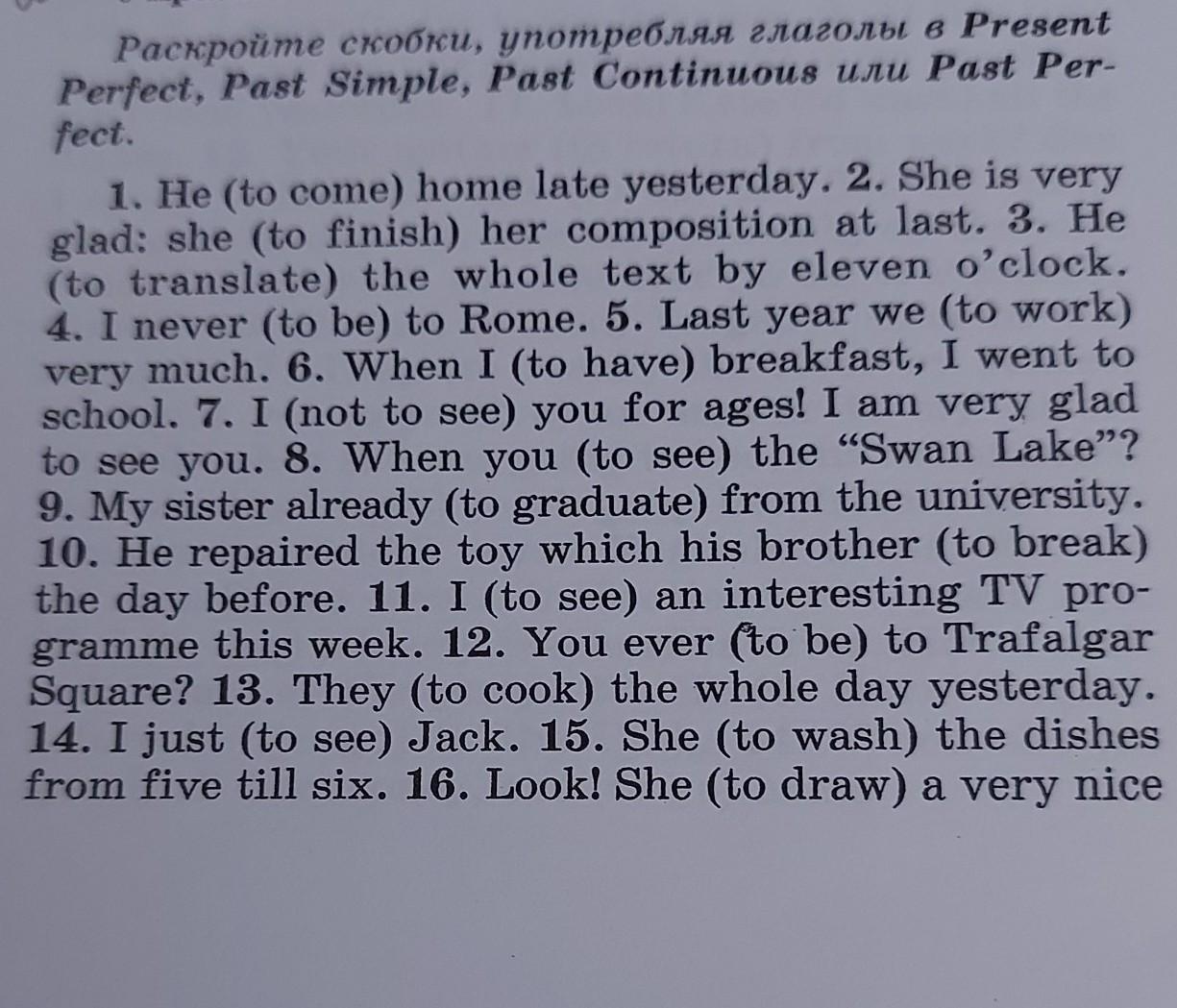 помогите пожалуйста. Раскройте скобки употребляя глаголы в Present Perfect, Past Simple, Past Continuous или Past Perfect