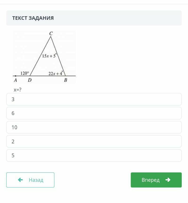По теореме о внешнем угле, внешний угол треугольника равен сумме двух односторонних углов треугольника, не смежным с ним. Зная, что внешний угол равен 120 градусов, можно составить уравнение: