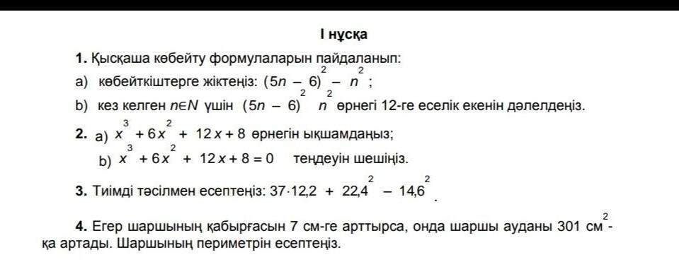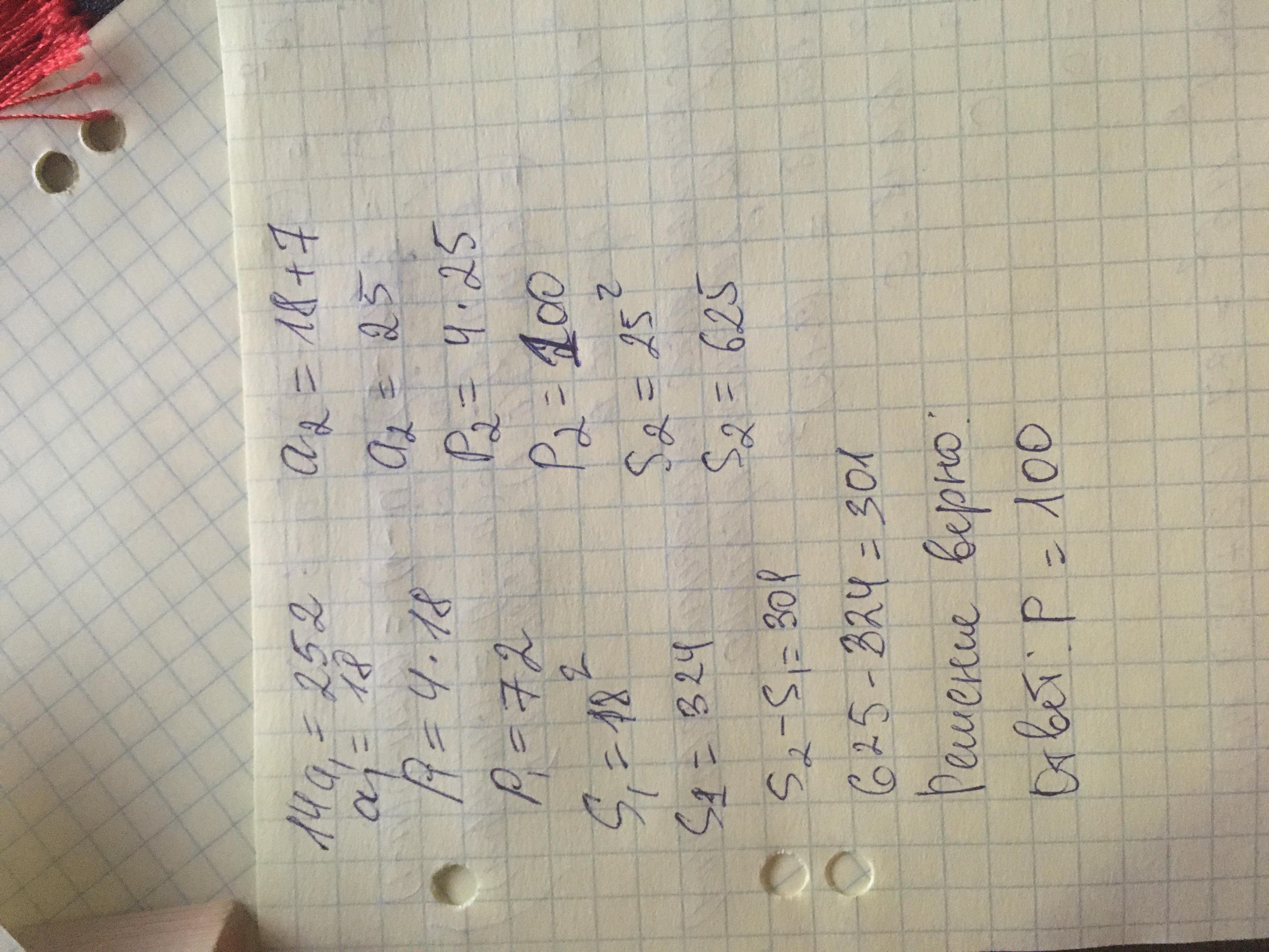 4. Если увеличить сторону квадрата на 7 сантиметров, то площадь квадрата увеличится на 301см^2 вычислите периметр квадрата.
