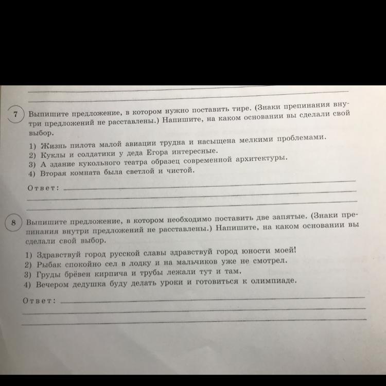 три предложений не расставлены.) Напишите, на каком основании вы сделали свой