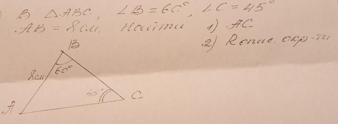 АС = 8 · √3/2 : 1/√2 = (8 · √3 ·√2) : 2 = 4 √6 см