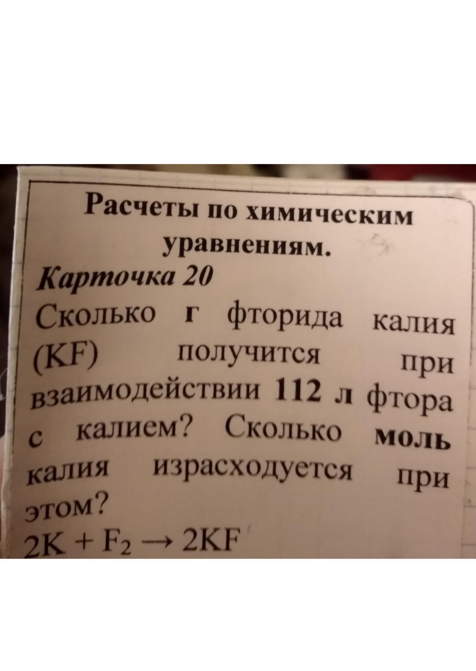 n(KF) = 2n(F2) = 2*5 моль = 10 моль