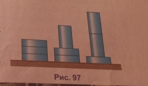 Чи однаковий тиск чинять на поверхню столу три тила з однаковими масами, якщо вони розташовани так, як показано на рисунку 97