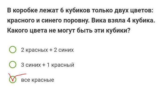 Значит 4 кубика не может быть красного цвета.
