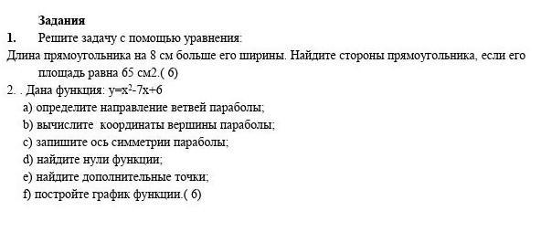 у вершины = (3.5)² - 7 * 3.5 + 6 = 12.25 - 24.5 + 6 = -6.25