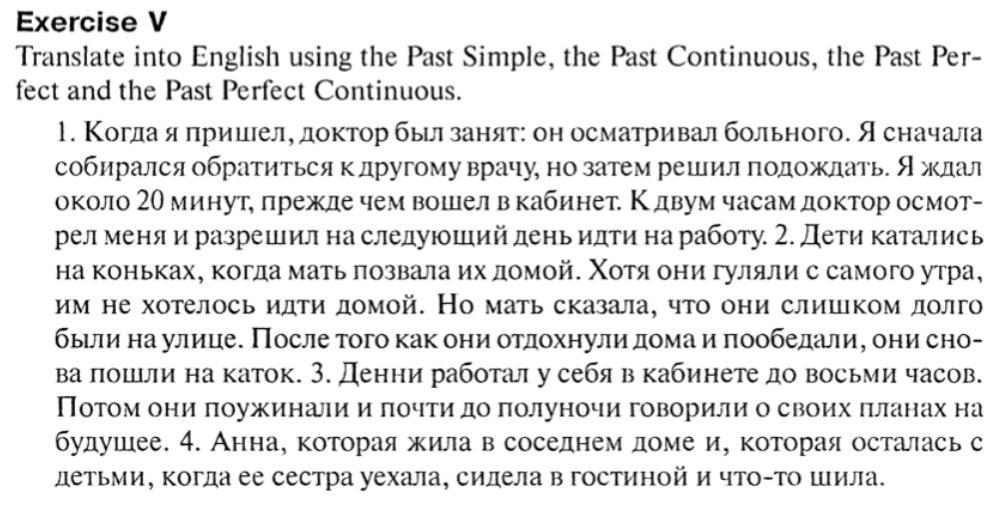 1. When I arrived, the doctor was busy examining the patient. At first, I was going to go to another doctor, but then I decided to wait. I waited for about 20 minutes before I entered the office. By two o'clock the doctor had examined me and allowed me to go to work the next day. 2. The children were skating when their mother called them home. Although they had been walking since the morning, they did not want to go out.