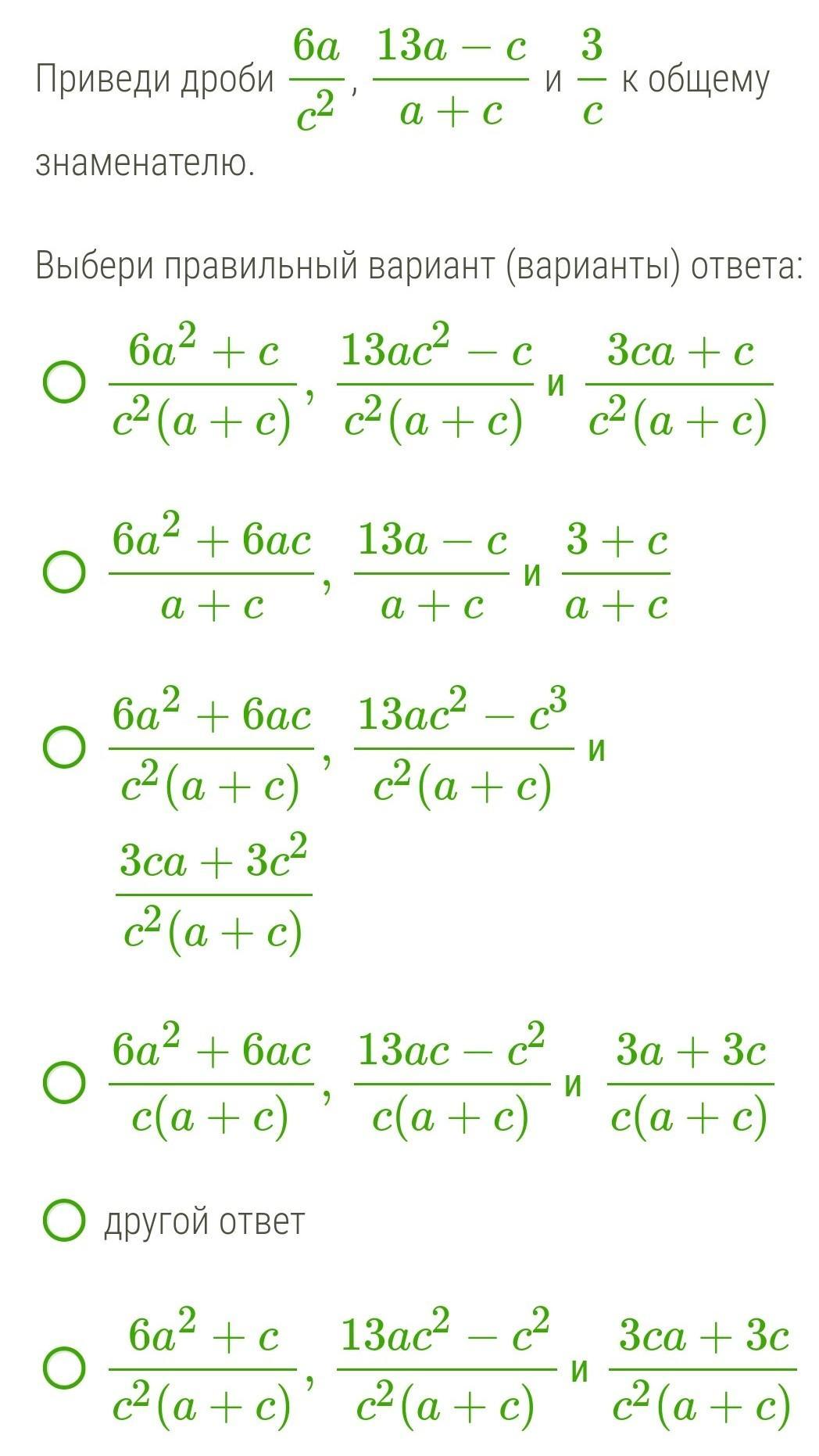 первая дробь будет: 6а(а+с)/ с²(а+с) = (6а²+6ас)/ с²(а+с).