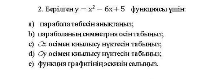 б) найти ось симметрии параболы; в) Найдите точку пересечения с осью Ох;