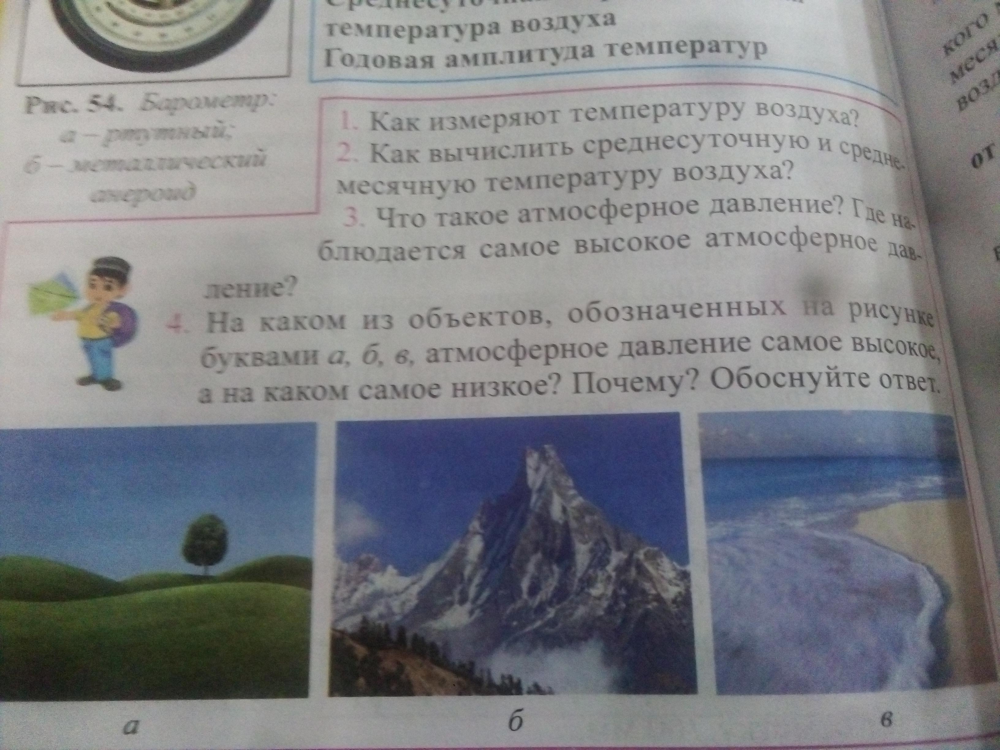 самое низколе давление на ресунке б, потому что горы находятся давольно высоко, и из за это давление понижается