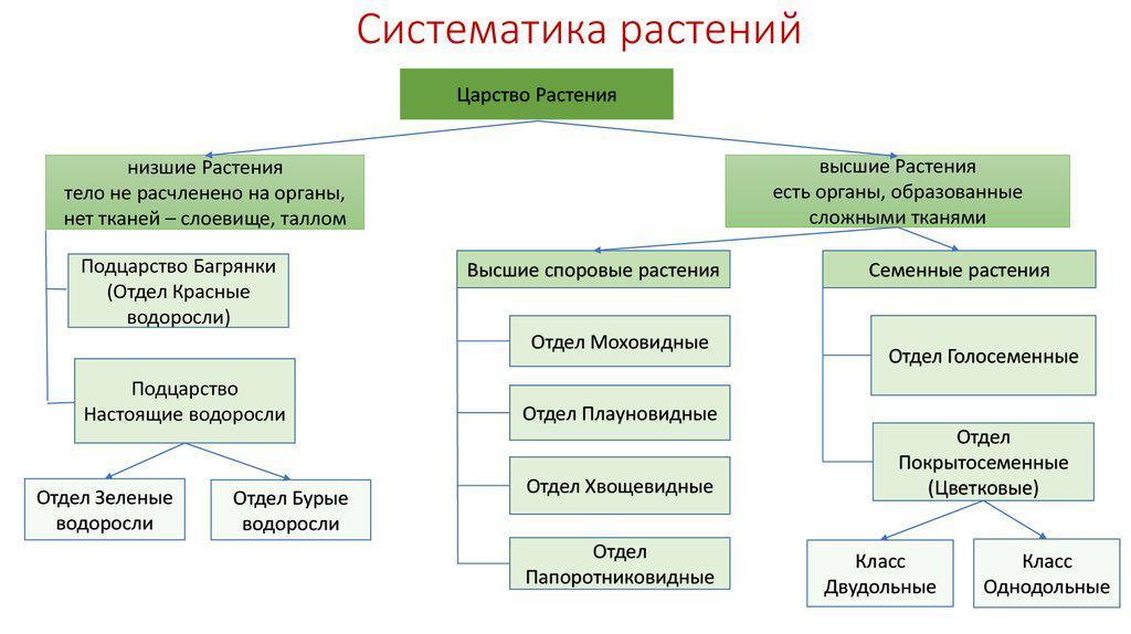 систематика, или классификация растений, растения с низшим строением. биология 6 класс §37 конспект.