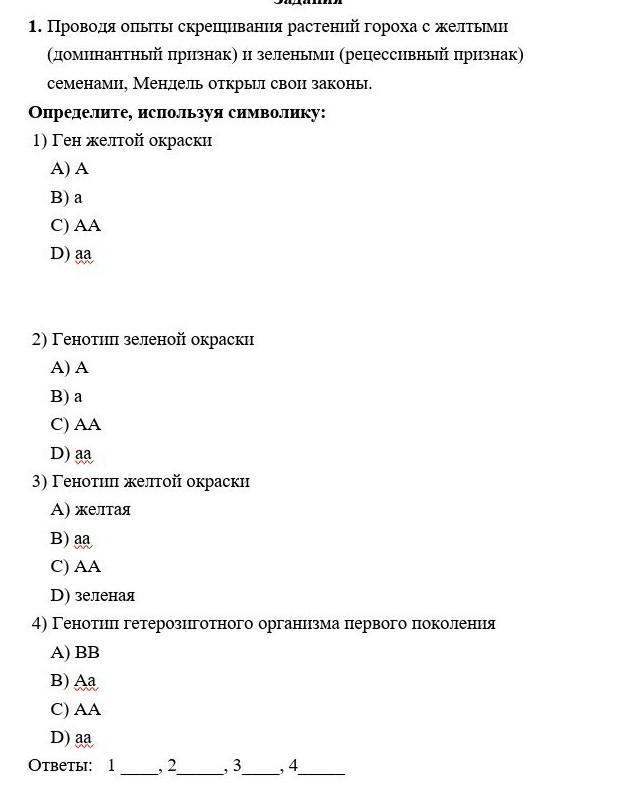 Ответы: 1 А, 2 D, 3 С, 4 В