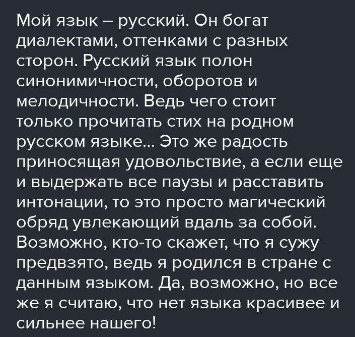 Язык - это клад, хранящий национальное достояние. У каждой птички, у каждой рыбки, у каждого народа есть свой родной язык, который мы впитываем в себя с молоком матери и несем всю свою жизнь с собой, наслаждаясь общением с окружающими, сообщая радостную новость родным или просто говоря ласковые и добрые слова друг другу. Все это наш язык.
