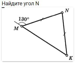 180° - 130° = 50° - ∠M, так как ΔMNK -равнобедренный, то ∠К = 50°