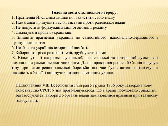 Визначити причини та наслідки «великого сталінського терору» проти українських діячів образотворчого мистецтва.