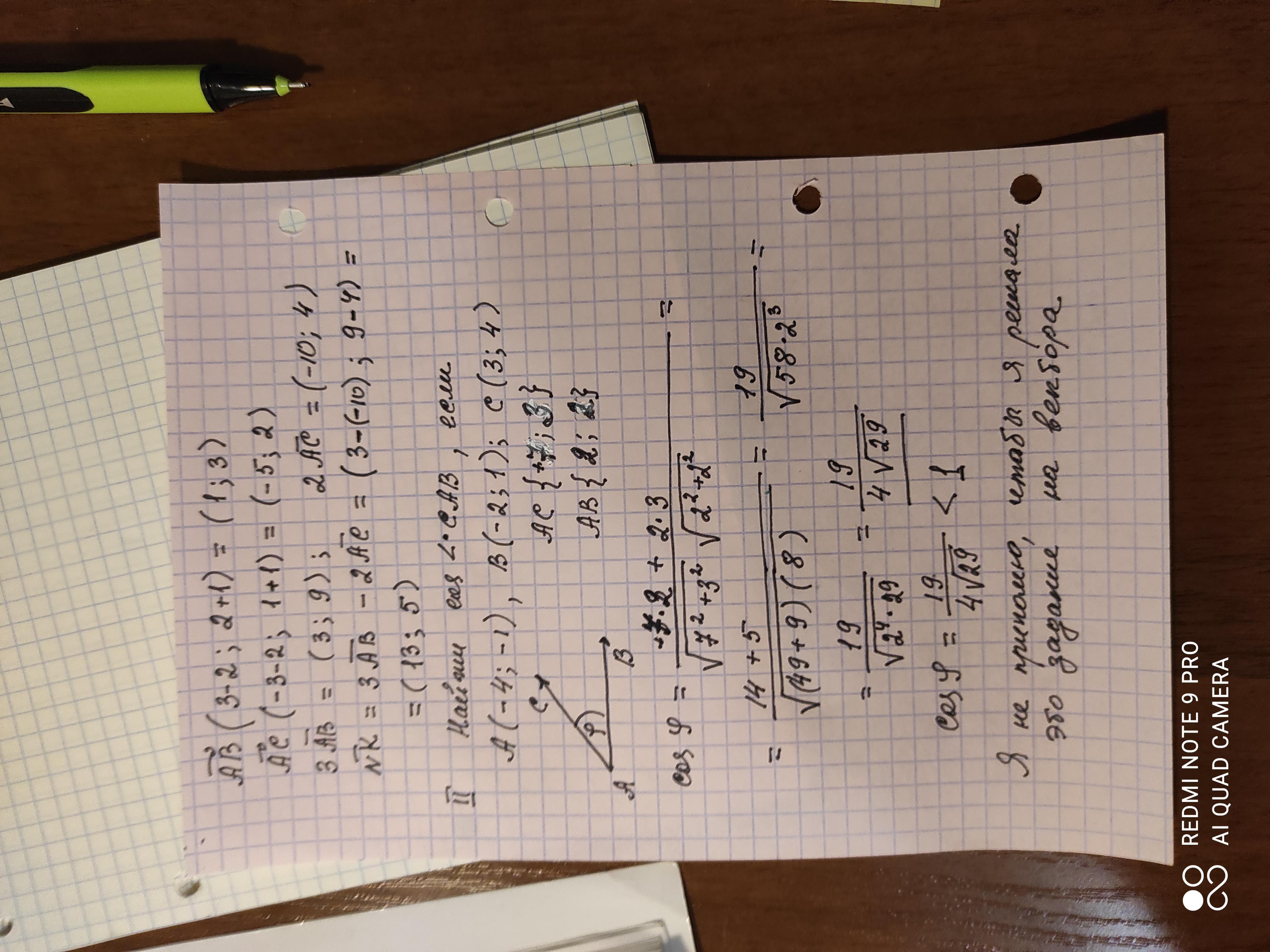 Знайдіть cos∠CAB, якщо А ( - 4 ; - 1 ), В ( - 2 ; 1 ), С ( 3 ; 4)