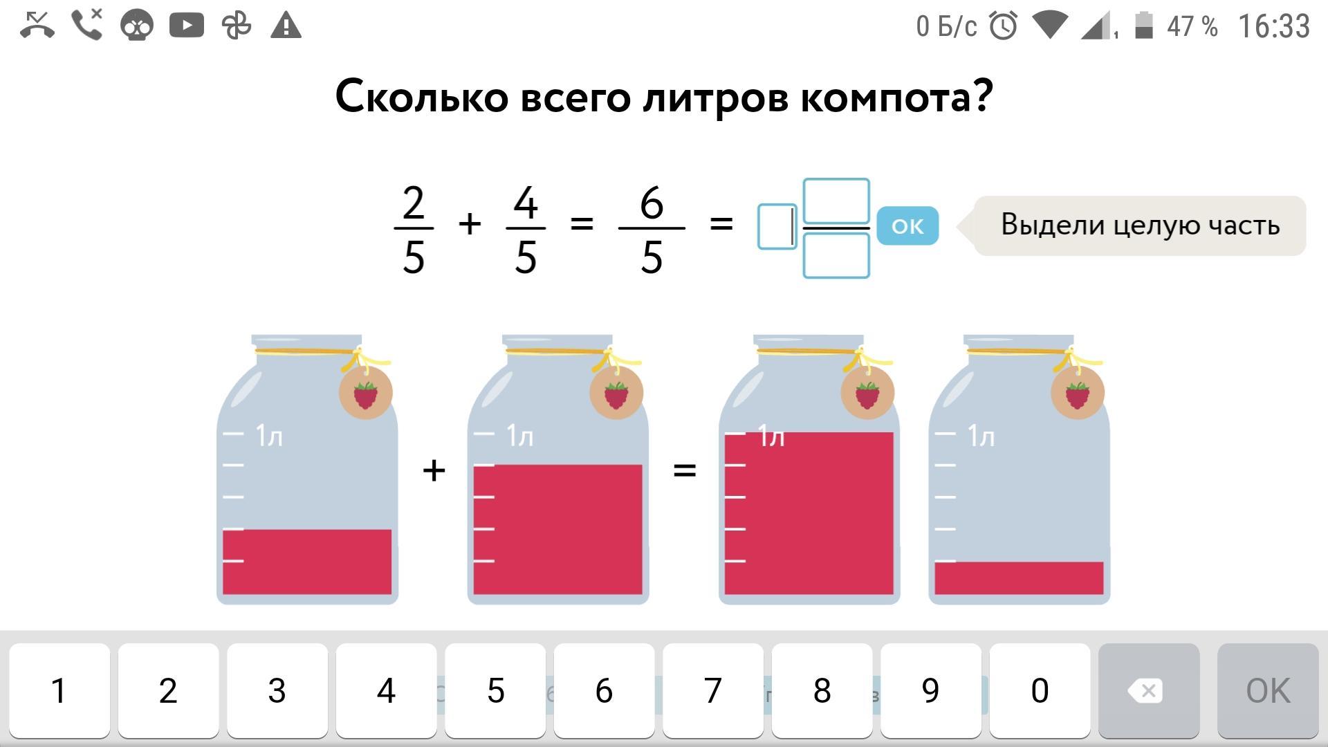 пять пятых это и есть одна целая, а у нас шесть пятых, значит это одна целая одна пятая.