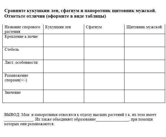 Мхи и папоротники относятся к отделу высших растений, т.к. их тело имеет корень, стебель и листья. Их также объединяет образование спор, при помощи которых они размножаются