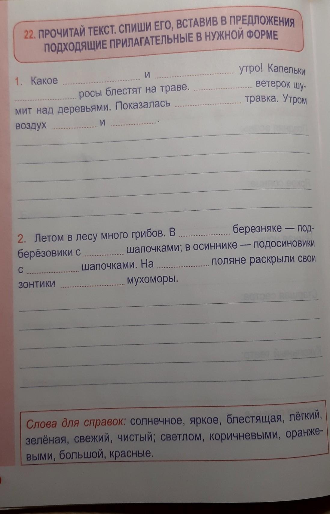 прочитай текст. спиши его, вставивв предложения подходящие прилагательные
