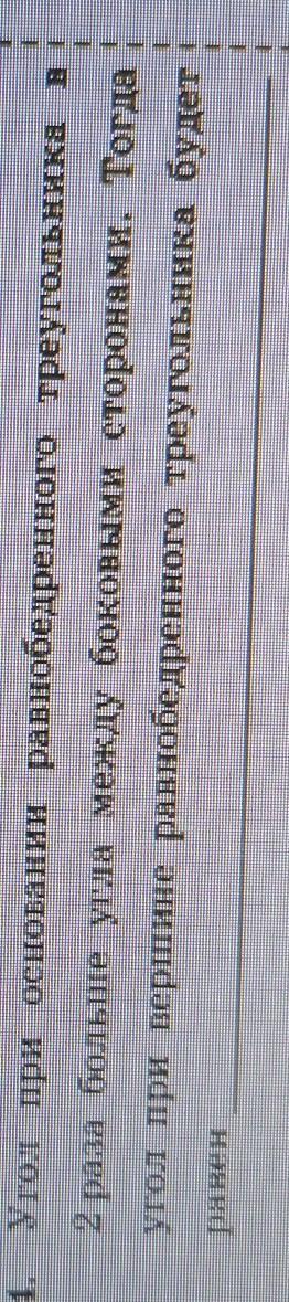 угол при основании равнобедренного треугольника в два раза больше угла между боковыми сторонами. тогда угол при вершине равнобедренного треугольника будет равен...
