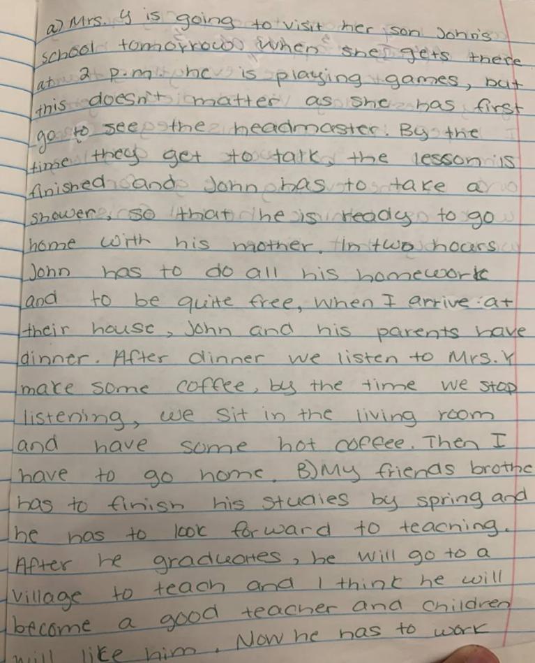 a) Mrs Y . ... her son John’s school tomorrow, (to visit)