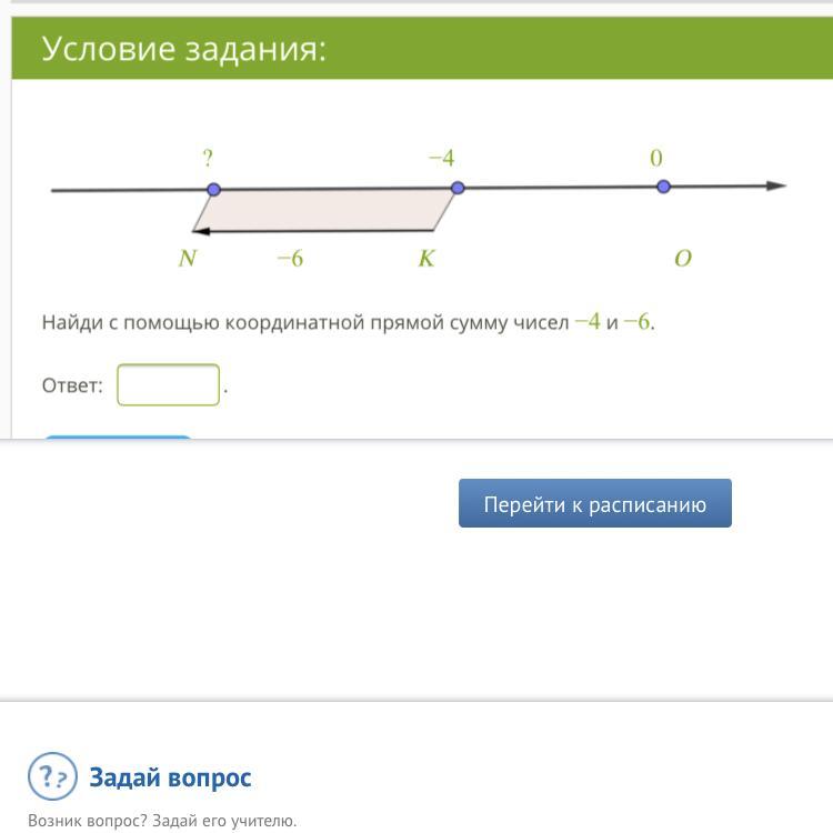 Найди с помощью координатной прямой сумму чисел −4 и −6.